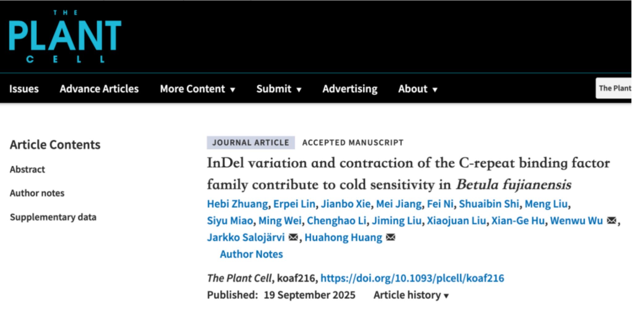 近日,林生院黃華宏教授課題組在國際知名植物學期刊《The Plant Cell》(中科院1區,IF=11.6)上發表了題為“InDel variation...